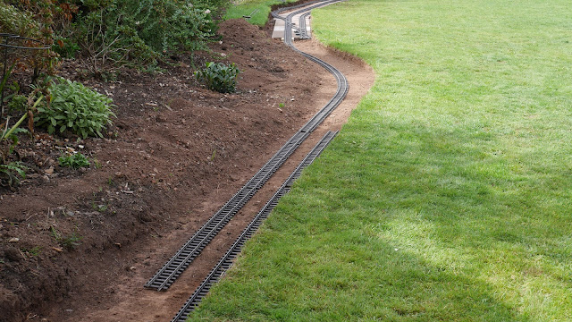 I have now dug out and roughly levelled the trackbed leading up to the top righthand side of the garden.